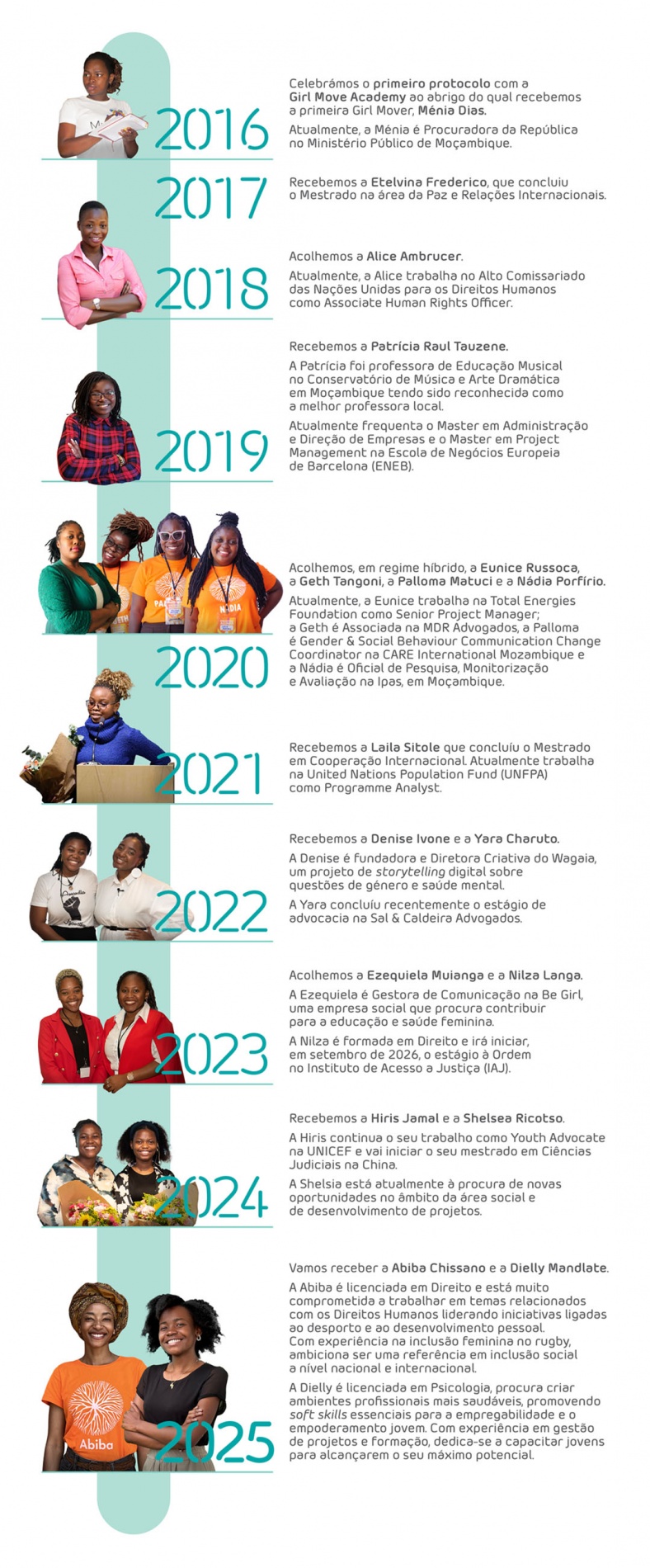Ao longo desta década, tivemos o privilégio de receber e acompanhar 17 jovens mulheres moçambicanas, reafirmando o nosso compromisso com a educação, a igualdade de oportunidades e a liderança social.